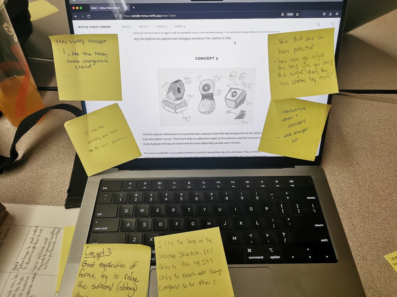 Our team decided to chose the honeycomb iteration of our video cam concept because it was the most viable design option for our persona.